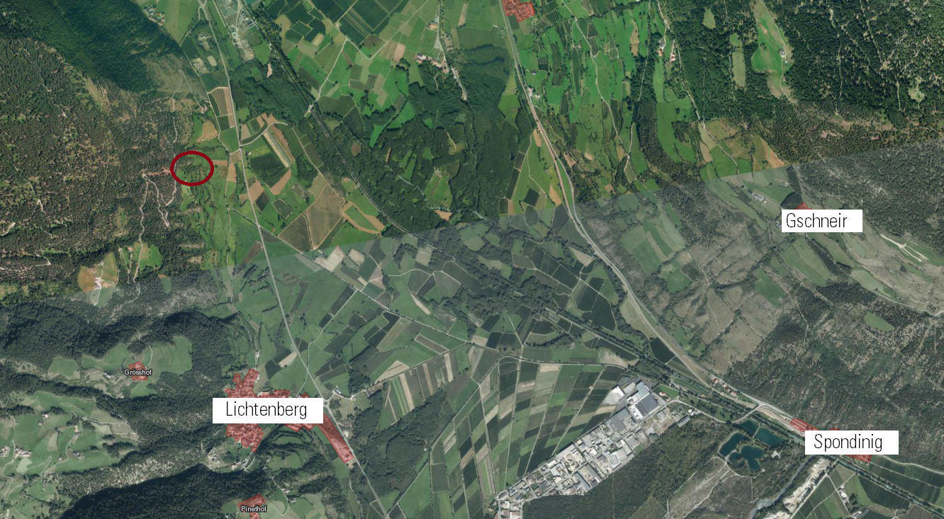 Die Liegenschaft befindet sich zwischen Glurns und Lichtenberg und besteht teilweise aus Wiese / Weide und Wald.