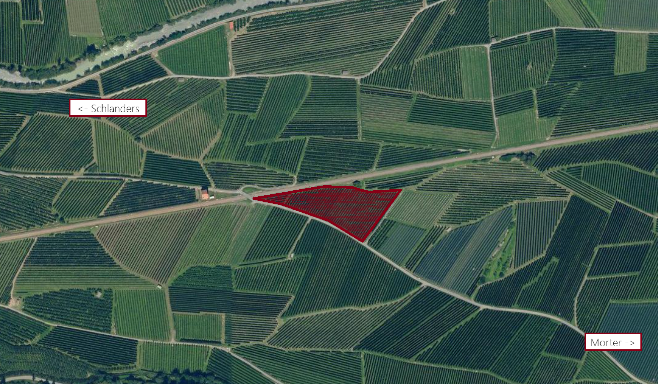 Zum Verkauf steht eine Obstwiese zwischen Schlanders und Morter. Die Liegenschaft befindet sich in der Nähe von Holzbrugg, direkt neben dem Bahnübergang.