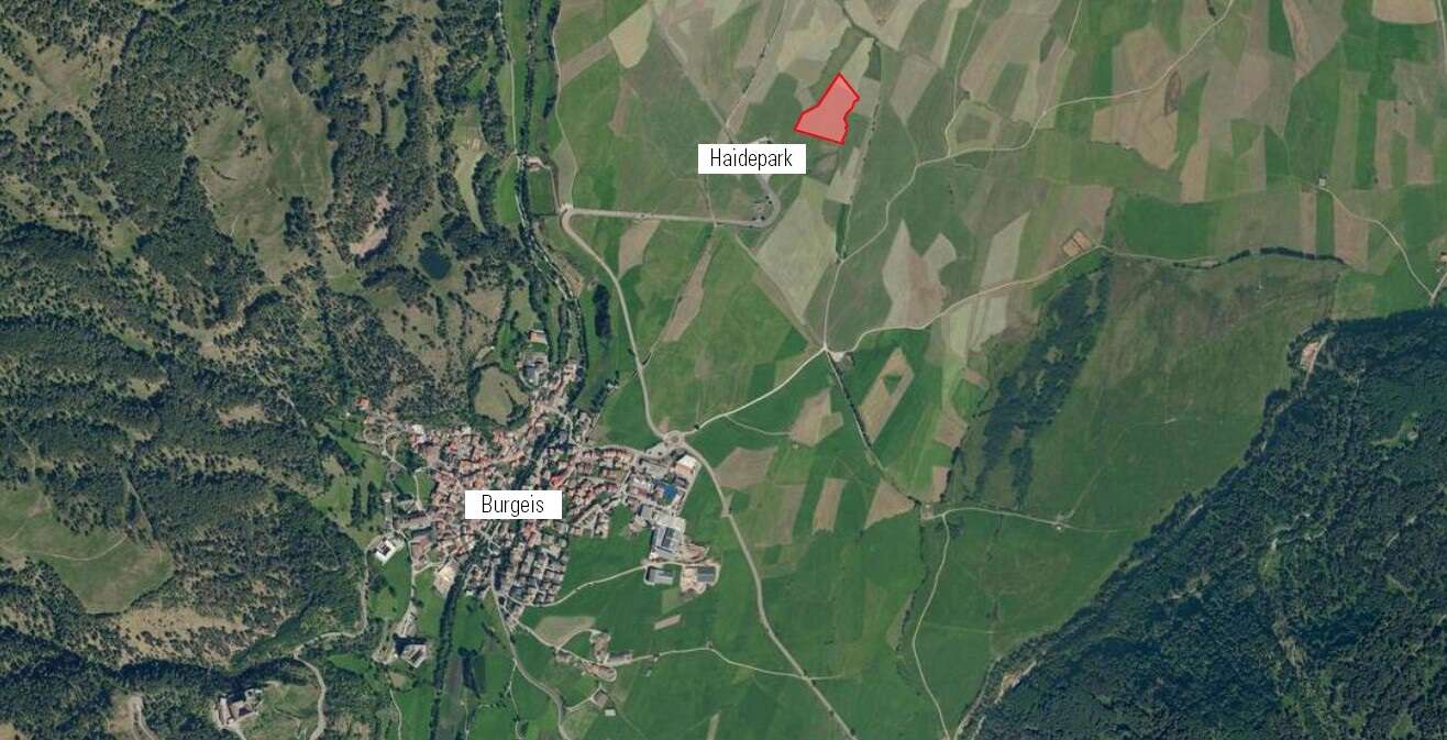 Zum Verkauf steht ein landwirtschaftliches Grundstück, hinter dem Haidepark, nahe Burgeis. Die Liegenschaft hat eine Katasterfläche von 12.287 m² und wird derzeit als Futterwiese bearbeitet.