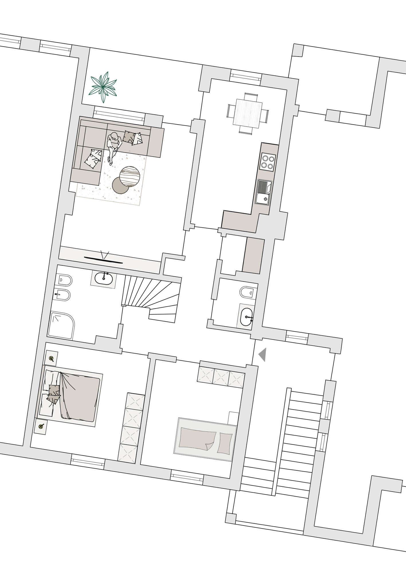 Die Wohnung erstreckt sich über das 2. und 3. Obergeschoss eines ruhigen Mehrfamilienhauses und besteht aus:- 2 Schlafzimmern