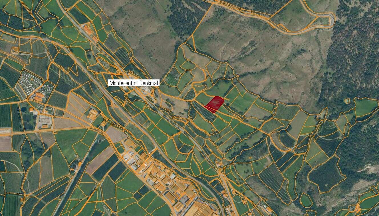 Zum Verkauf steht ein landwirtschaftliches Grundstück in Schluderns, oberhalb des Montecatini Denkmals. Das Grundstück hat eine Katasterfläche von ca. 3.313 m² und wird durch einen Weg getrennt, wodurch es nicht als Ganzes bearbeitbar ist.