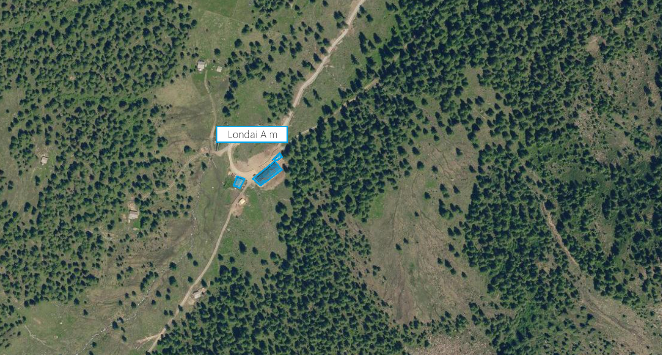 Zum Hof gehört auch der Mitbesitzanteil zu 4/180 an der Londai Alm, samt dazugehörigen Grundstücken. Diese sind jedoch nicht alle auf dem Lageplan eingezeichnet.