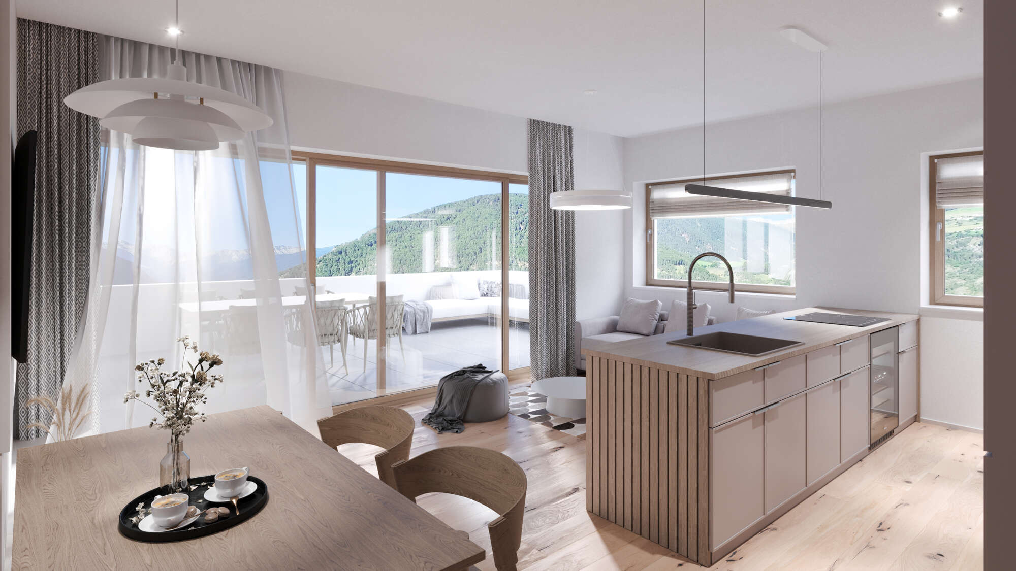 Bei der Wohnung Nr. 1 der Wohnanlage Jakobacker handelt es sich um eine große 3-Zimmerwohnung im Erdgeschoss eines Mehrfamilienhauses in einer sehr sonnigen Hanglage, Südausrichtung mit blick auf König Ortler und den oberen Vinschgau.