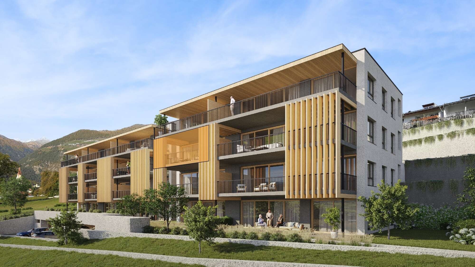 Bei der Wohnung Nr. 14 der Wohnanlage Jakobacker handelt es sich um eine große 2-Zimmerwohnung im 2. Obergeschoss eines Mehrfamilienhauses in einer sehr sonnigen Hanglage, Südausrichtung mit blick auf König Ortler und den oberen Vinschgau.