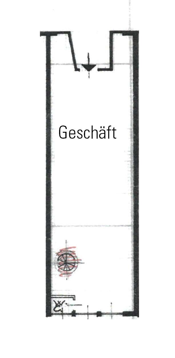 Es hat eine Fläche von ca. 79 m² und besteht aus einem Verkaufsraum und einem Abstellraum sowie WC.