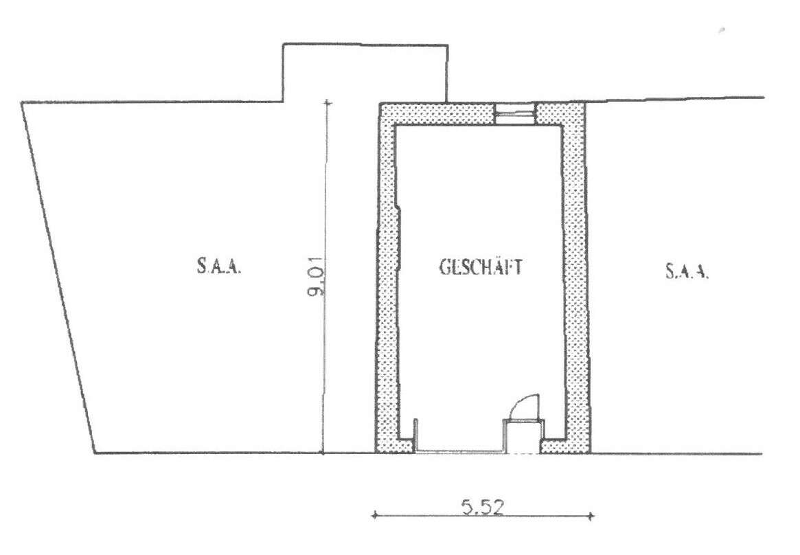 Das Geschäft hat eine Fläche von ca. 50 m² und besteht aus Verkaufsraum und einem WC. Zum Geschäft gehört weiters eine Schaufensterfläche.