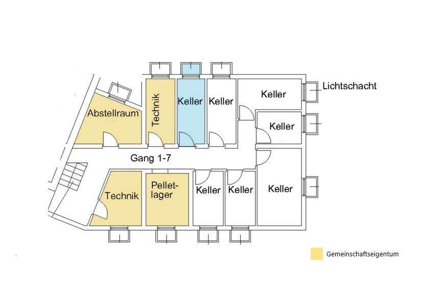 Die Wohnung liegt im Kellergeschoss des Mehrparteienhauses und besteht aus: