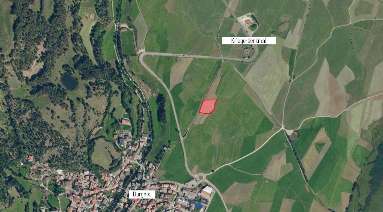 Zum Verkauf steht ein landwirtschaftliches Grundstück, in der Nähe des Kriegerdenkmals bei Burgeis.