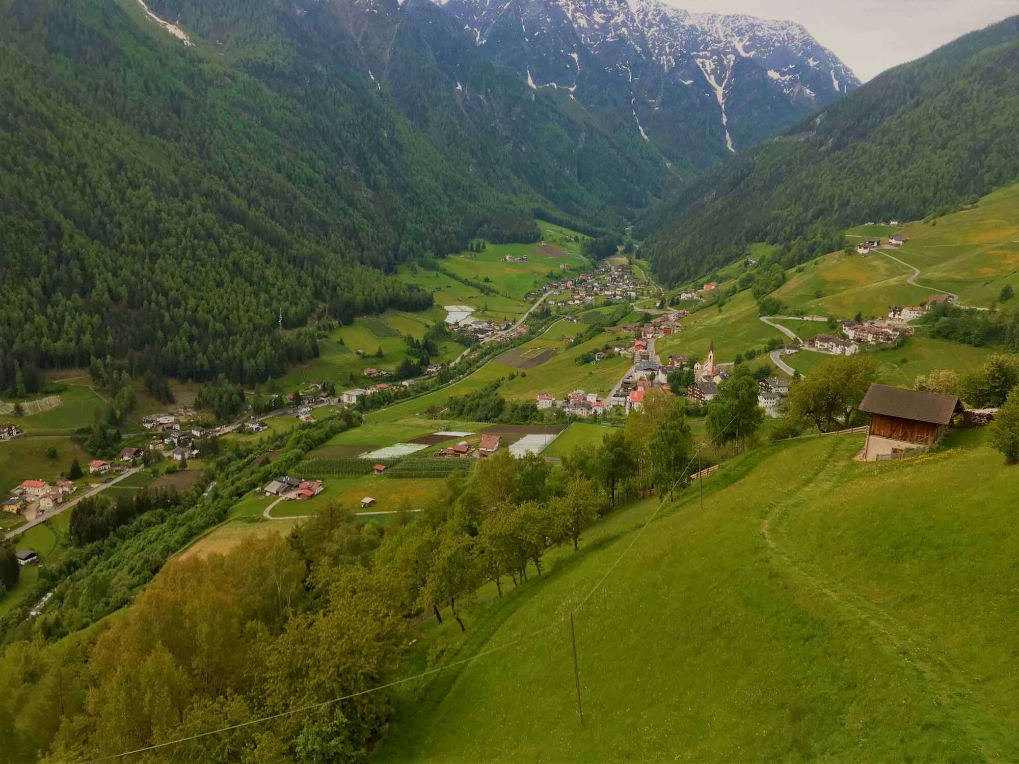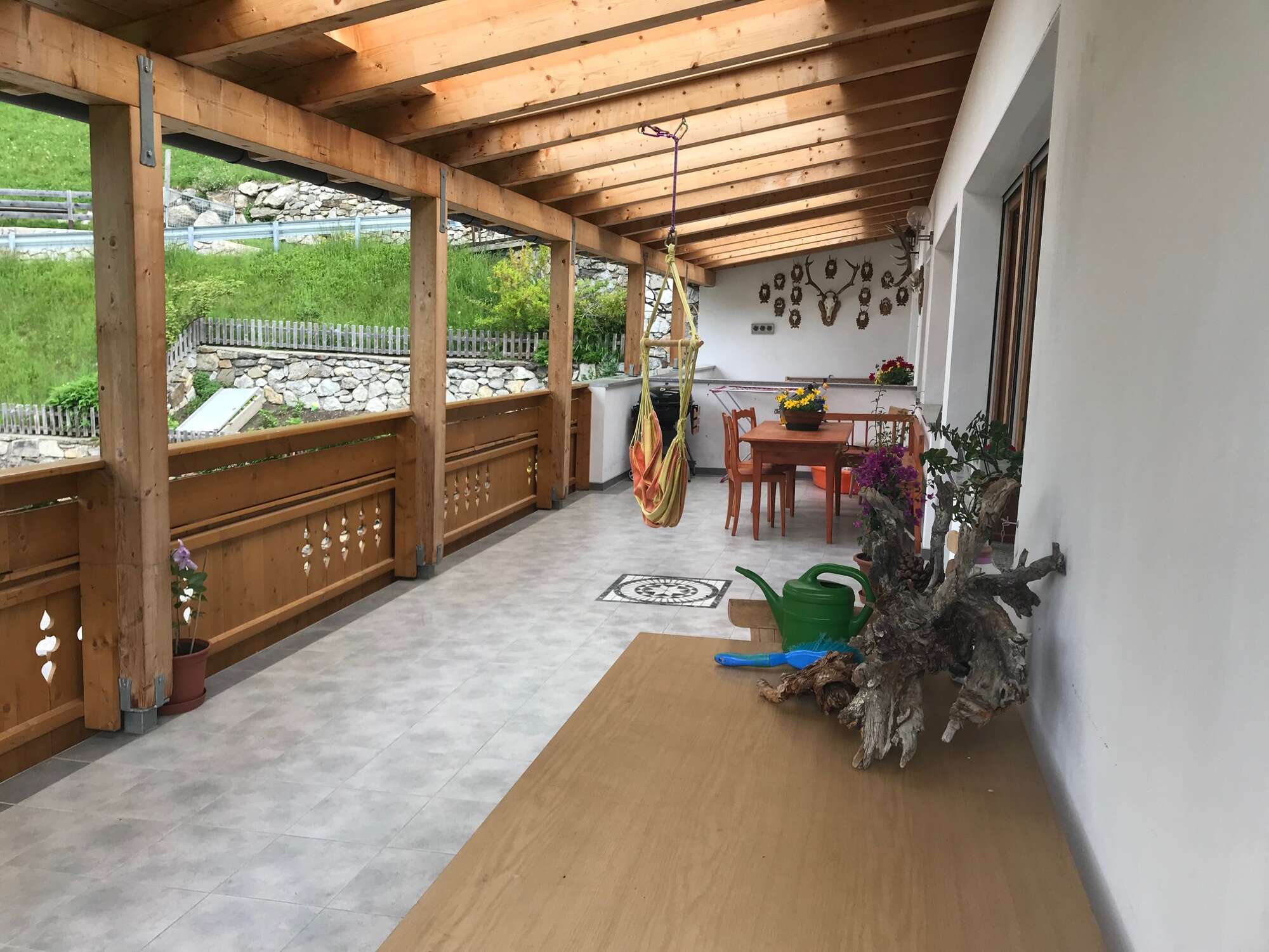 Zur Wohnung gehört ein Balkon, der einen schönen Ausblick über das gesamte Martelltal bietet. Weiters gehören ein Garten, ein Kellerabteil, ein Teil des Hofraumes und ein Stauraum im Dachgeschoss.