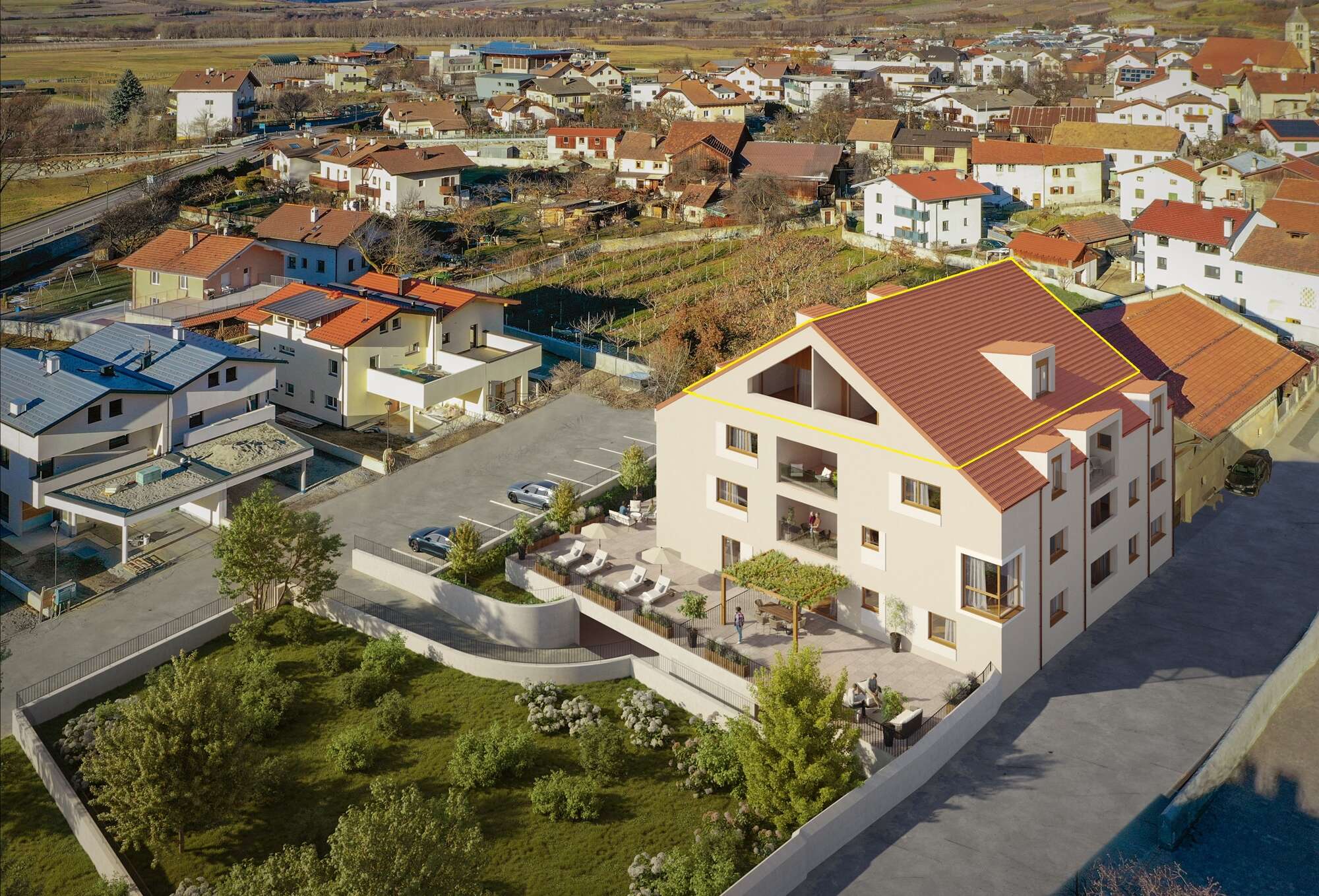 Verkauft wird eine exklusive Neubau-, Dachgeschosswohnung in Schluderns, direkt angrenzend an das historische Ortszentrum.
